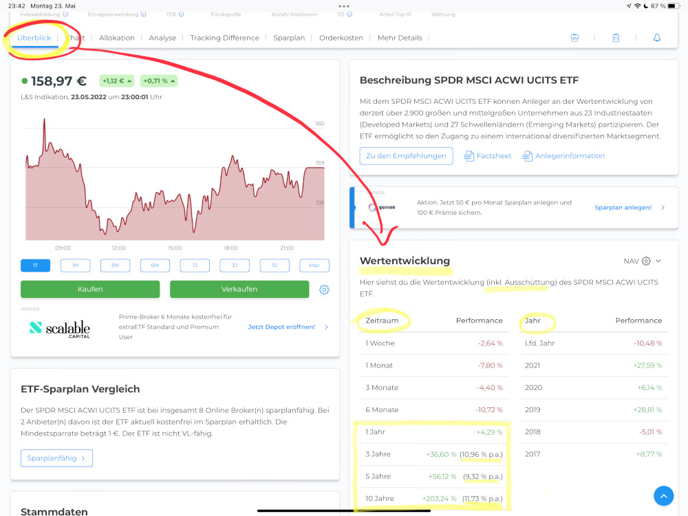 - Annualisierte Renditen listet extraetf.com auf der Übersichtsseite aus.