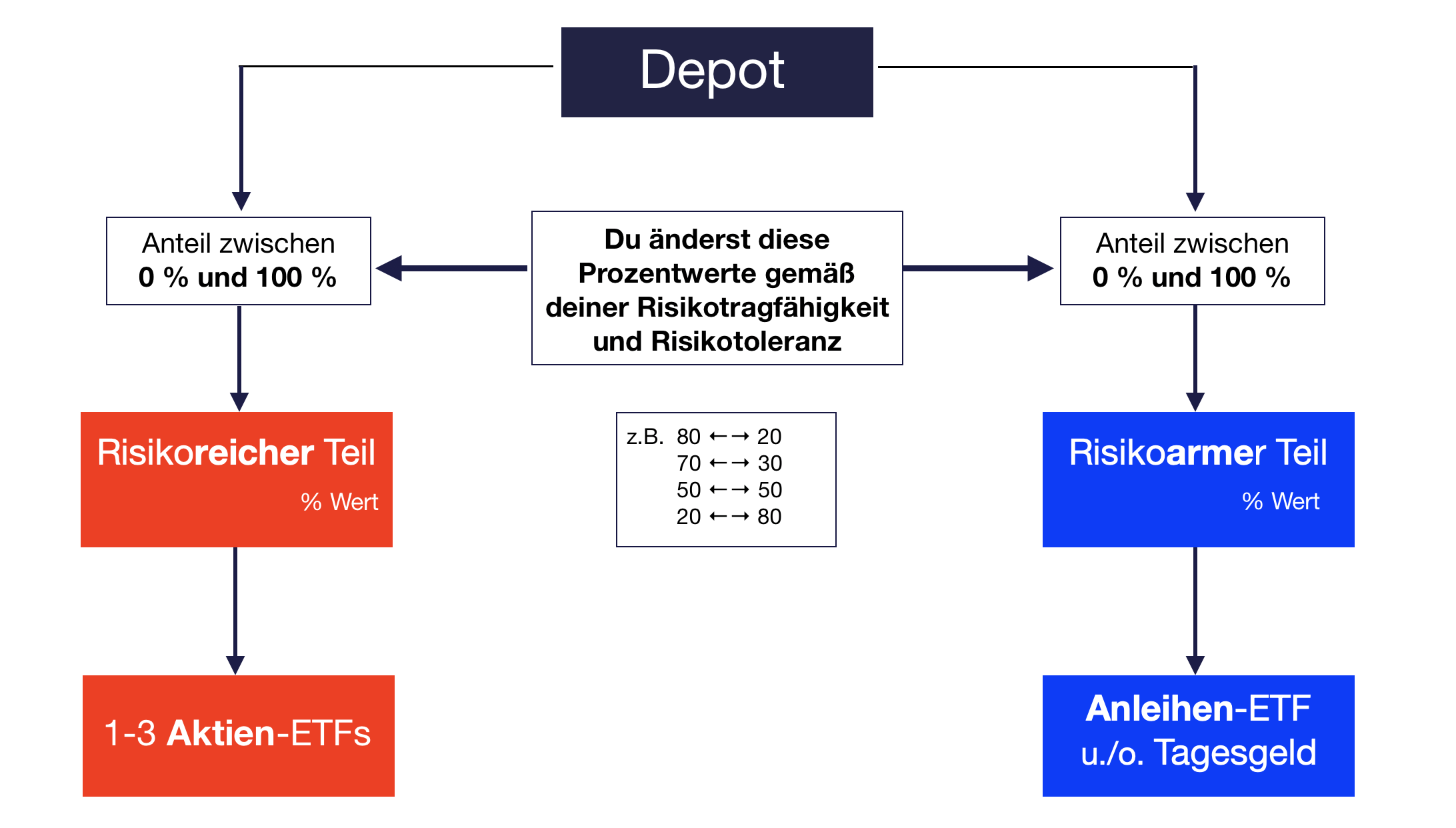 Legen wir unser Geld nun nur riskant an? Also alles in Aktien-ETFs? Oder halbe-halbe? Halb riskant, halb risikoarm? Oder 30/70? Oder wie jetzt? Und wieso gelten eigentlich Anleihen als risikoarm, bei denen die Kurswerte auch schwanken können und es Emittentinnen gibt, die ausfallgefährdet sind?